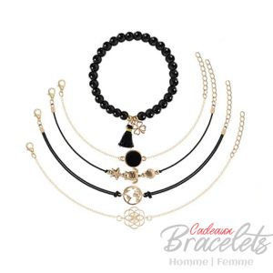 Ensemble de bracelets noir et doré avec monde étoile et tortue (lot de 5)