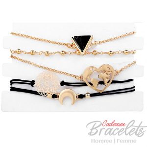 Ensemble de bracelets doré avec cœur monde et lune (lot de 5)