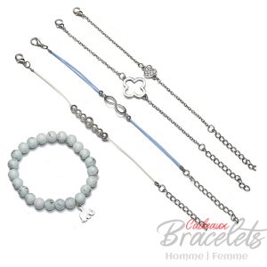 Ensemble de bracelets argent avec infinité, éléphant et cœur cristal (lot de 5)
