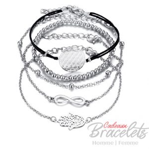 Ensemble de bracelets infini et khmissa (main de Fatima) porte bonheur pour femmes (lot de 5)