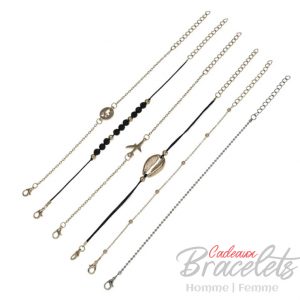 Ensemble de bracelets doré avec avion, coquillage et monde (lot de 5)