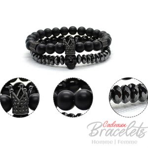 Bracelets pierre perle crâne et couronne (lot de 2)