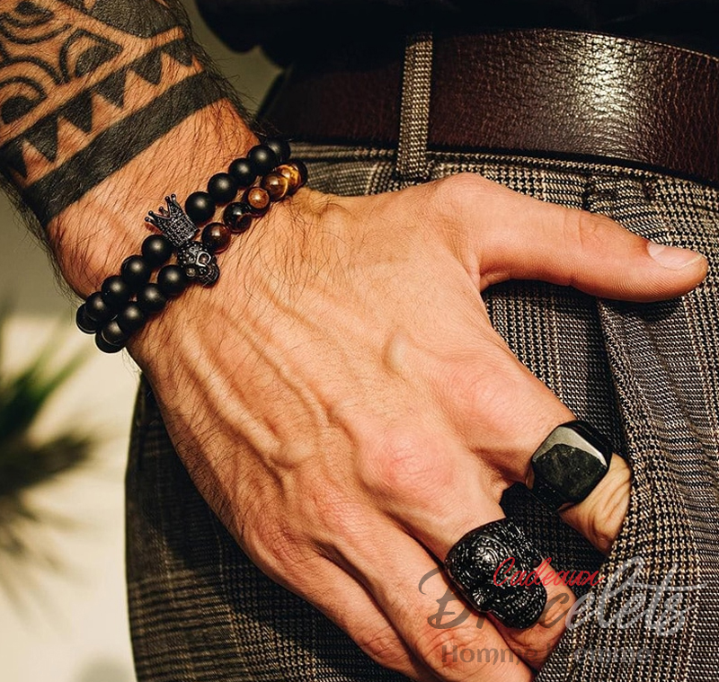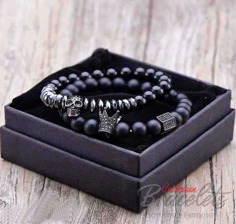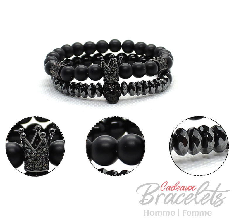 Ce lot se compose de 2 bracelets avec pierre perle crâne et couronne.